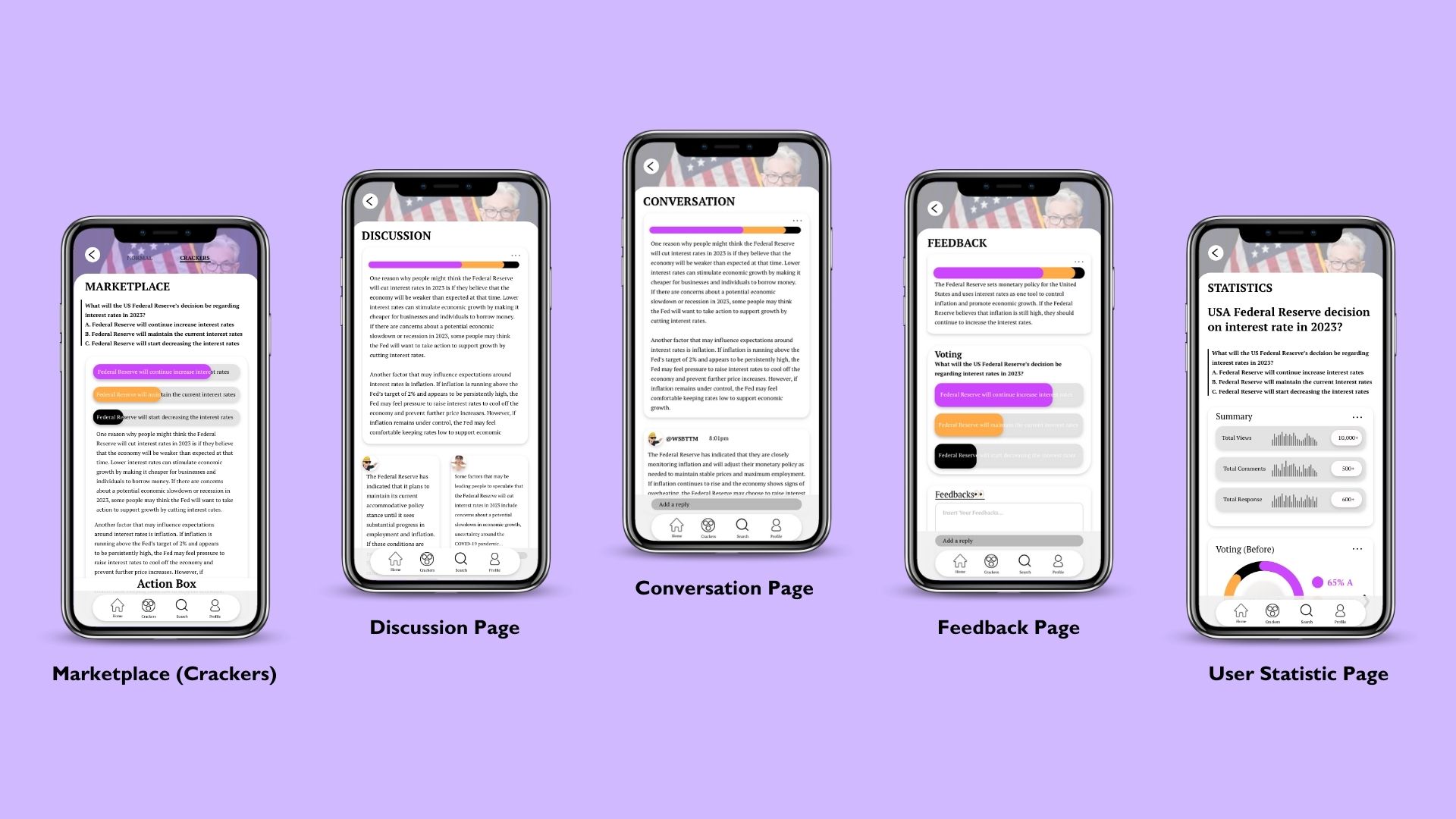 Crackers Daily is an anonymous platform for users to collectively discuss a topic daily. Users can use quadratic voting to vote and comment on their views. The display of the content will be using Pinterest or Tinder layout for more interactive experience for users.